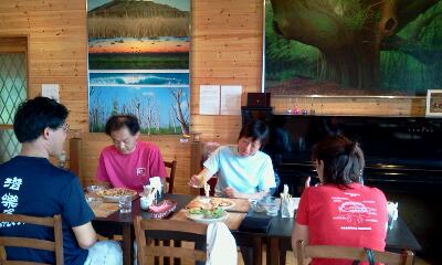 昼食は、おしゃれなキャフェ。店主の女性のお父さんが画家らしく、店内は三宅島の風景がいっぱいでした。食事も美味しかったです。