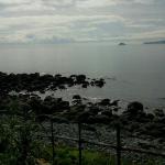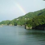 朝方ぱらっと降った雨が素敵な贈り物をしてくれました。海にかかる虹。わかるかな?