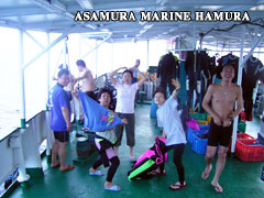 ダイビング講習のおためしとしてシュノーケリング参加の方々。トカラ列島に向けエントリーの練習を中心にトレーニング組みの方々、初級講習の方にリフレッシュダイビング、上級講習でMSナビゲーショントレーニングの方といや〜夏の海をダイビングを満喫してきました。